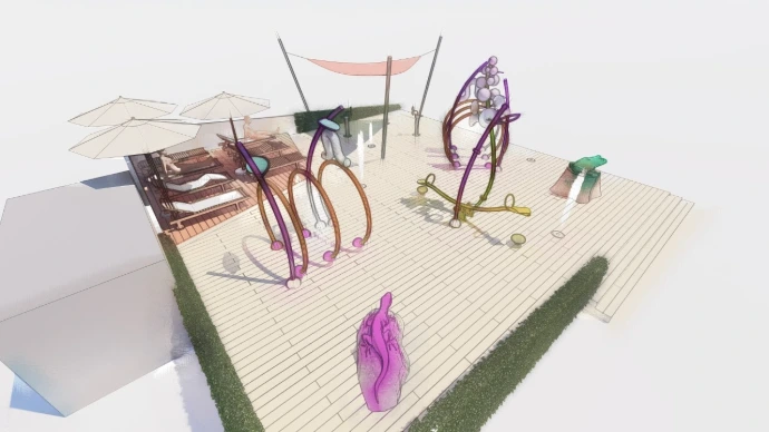 Custom-patterned wave generators, climbable and visually striking.